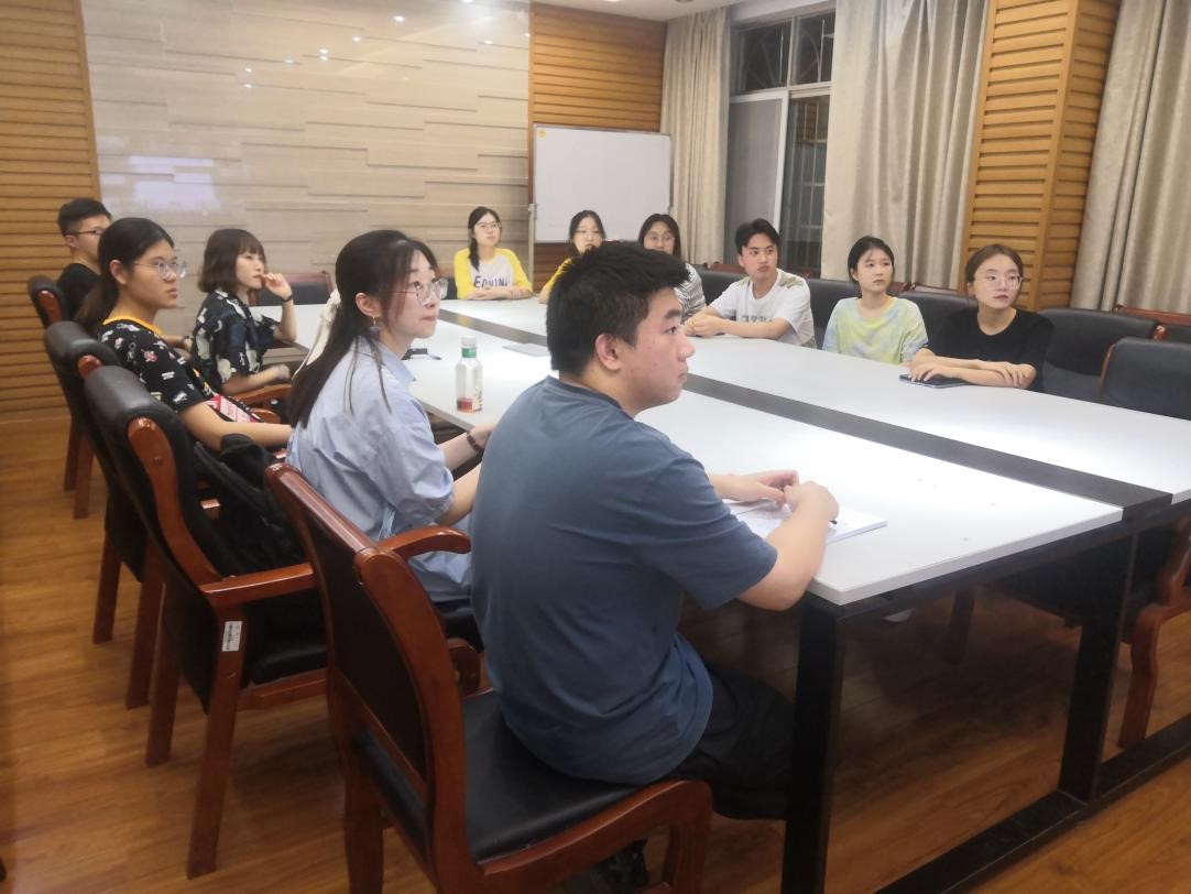 随后,与会员工代表围绕暑假期间学习生活安排、所关注的时政热点事件、假期生活中存在的困惑等方面展开了积极分享。2018级本科生柳照群同学在谈到关注的时政热点时表示,自己作为一名中共党员,假期在家认真阅读了党支部配发的《中国共产党简史》,还表示要在接下来的学习和工作中,努力承担起青年人、法律人应有的责任与担当,他提到“要积极响应党中央号召,牢记初心使命,坚定理想信念,践行党的宗旨,永远保持同人民群众的血肉联系,始终同人民想在一起、干在一起,风雨同舟、同甘共苦,继续为实现人民对美好生活的向往不懈努力,努力为党和人民争取更大光荣”。