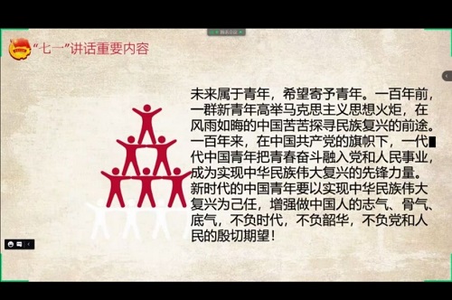在下一步会议中,李丹阳同学组织同学们对“七一”重要讲话内容与精神进行了相关学习,在本次学习中,同学们深情回顾中国共产党一百年奋斗历史,展望中华民族伟大复兴的光明前景,思考着在新的征程中青年员工将如何堪当民族复兴大任的历史命题。习近平总书记在庆祝中国共产党成立100周年大会讲话中强调:“未来属于青年,希望寄予青年。新时代的中国青年要以实现中华民族伟大复兴为己任,增强做中国人的志气、骨气、底气,不负时代,不负韶华,不负党和人民的殷切期望”更是让同学们得到深受震撼,在新中国百年历程中,青年一直是国家发展的主力军,作为当代老员工的我们,应当敢于承担时代重任,为实现中华民族伟大复兴不懈奋斗,不负青春,不负韶华。